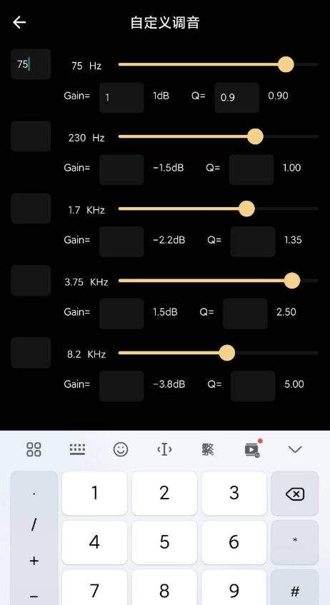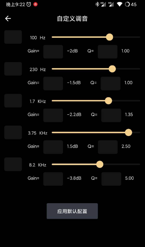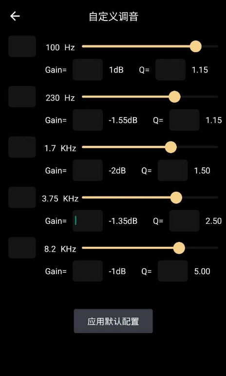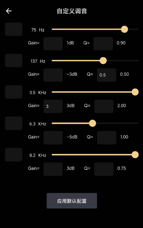 首先进入到Alice的数字化均衡器,你会得到五个可供自行设定的任意频段。