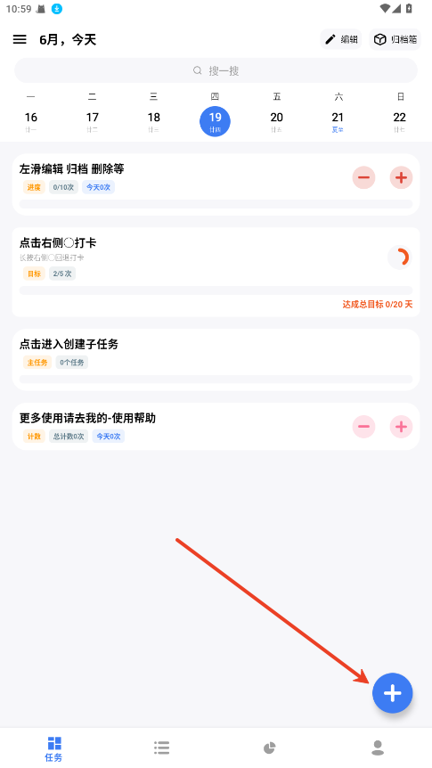 点击“+”按钮,输入任务名称或目标,开始记录进度。