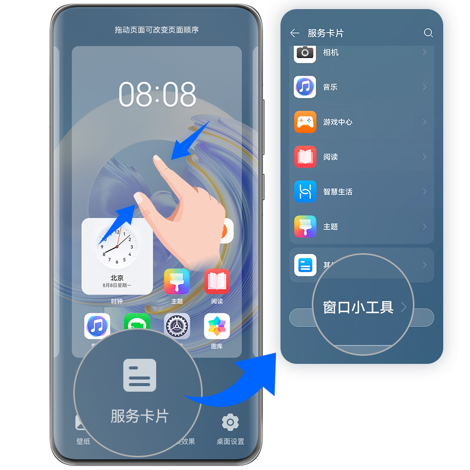 手机桌面双指捏合,点击底部服务卡片,点击底部窗口小工具,找到点滴进度