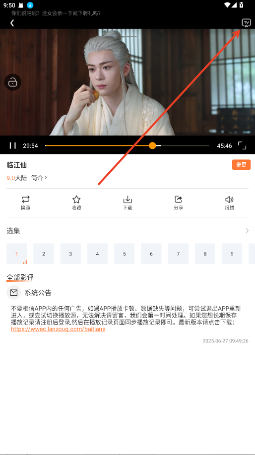 2.点击右上角TV投屏。