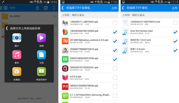3.下面我们来说说上传文件。图片、视频、音乐、文档、应用安装包和 SD 卡等等这些内容,都可以上传到网盘,建立不同的文件夹,分类整理,功能不能更贴心!那么问题来了:东西上传之后能把手机上的文件放心删除吗?上传到三星云的文件别人会不会看到?能不能保证安全?小编亲测,只有通过账号密码授权才可以访问曾经上传的文件。三星云还会将上传的每一个文件进行多份备份,最大限度保证安全不丢失。重要的是,免费 10TB 的超大容量,想传多少都可以。那么问题又来了:10TB 的空间,存那么多照片还有地方存文件吗?事实上,存储在三星云上的照片文件并不会占用 10TB 的存储空间,大可开启 “手机照片自动上传”,随时随地备份,为下一组美照腾出足够空间。