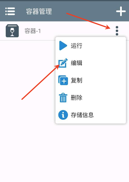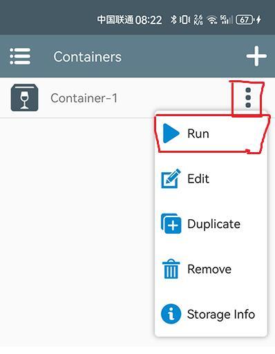 1.进入软件点击右上角的+创建容器