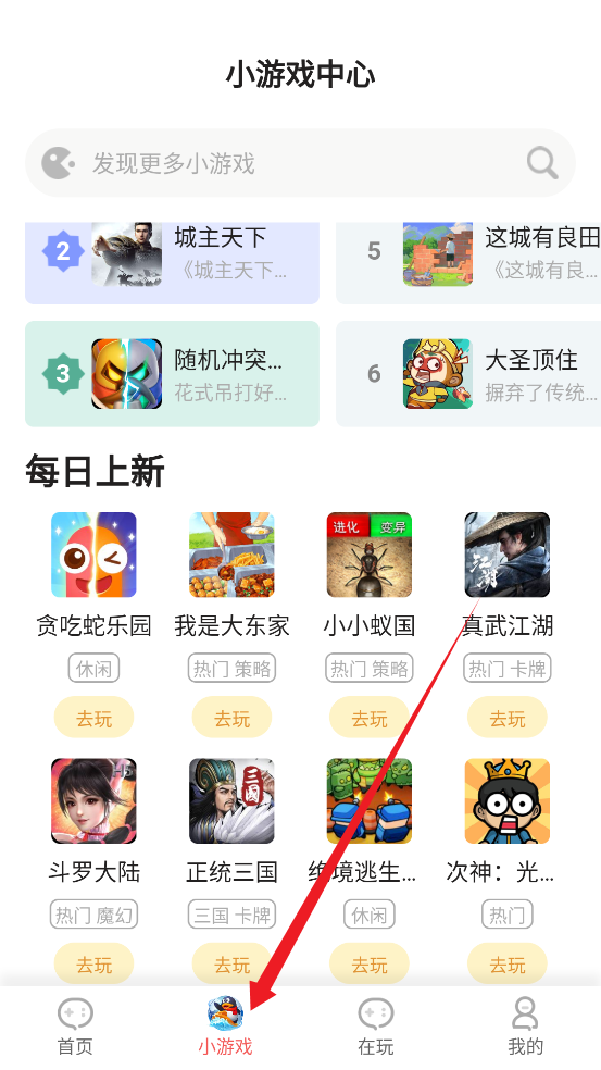 6.来到【小游戏】界面,可以发现更多游戏资源,如图所示。