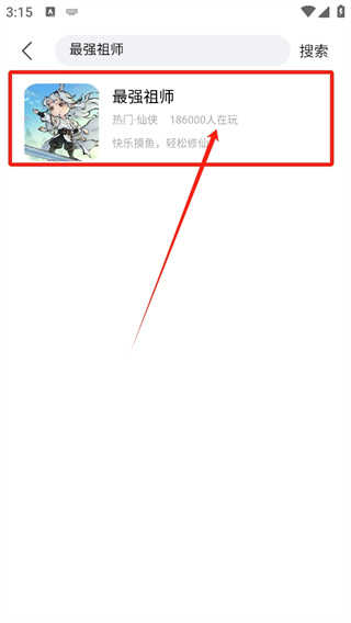 3.从搜索结果中选择目标游戏,比如这里以“最强祖师”为例进行演示。