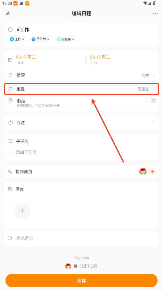 3.为任务设置提醒时间,确保你不会忘记重要的事情,可以选择定时提醒或周期性提醒。