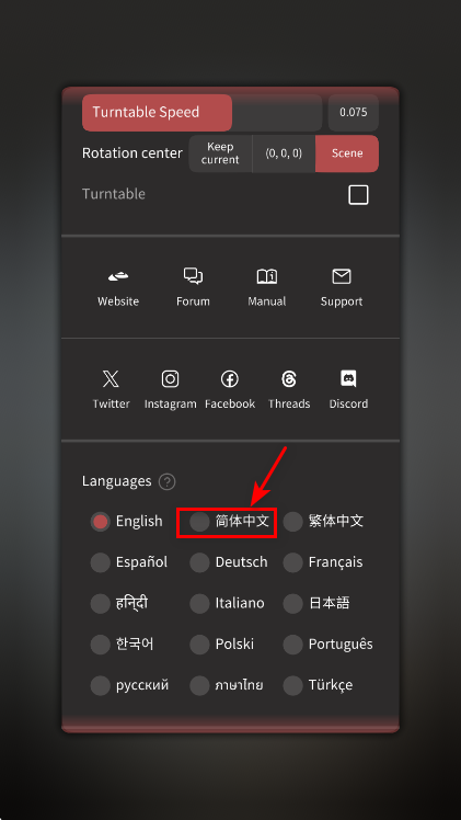 2.在这里就能看到简体中文了