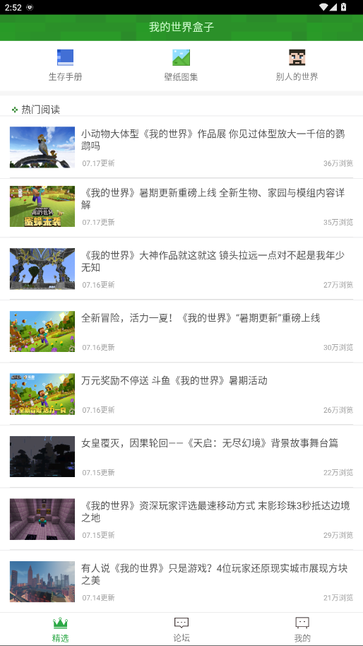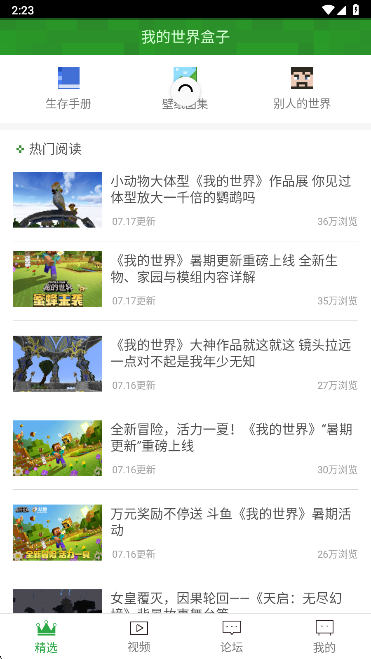 1.在本站下载安装我的世界盒子app并打开,来到首页可以获取到精选内容