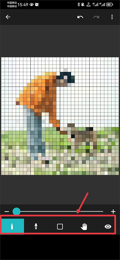 3.最后选中第一个画笔工具后就可以在画布小格子中进行颜色填充啦