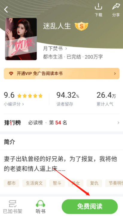 4、点开想看的小说资源以后,点击“免费阅读”。