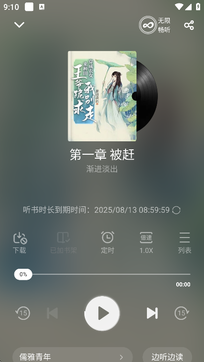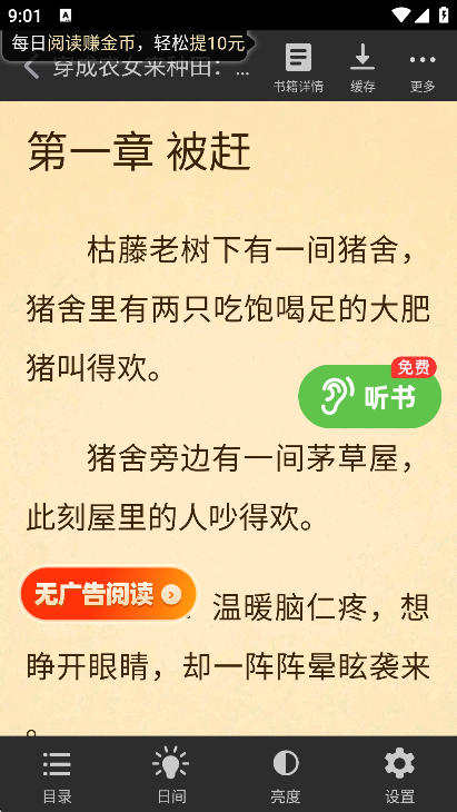 1、在书城或分类页面中找到想听的小说,点击进入小说简介界面