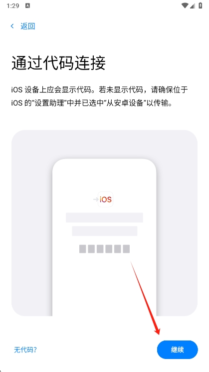 输入iPhone上显示的代码,并继续按照应用的指示完成数据转移过程。