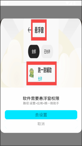 1、打开软件的第一步就会要求我们进行悬浮窗权限设置操作,我们点击去设置。