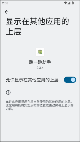 3、开启允许显示在其它应用的上层。
