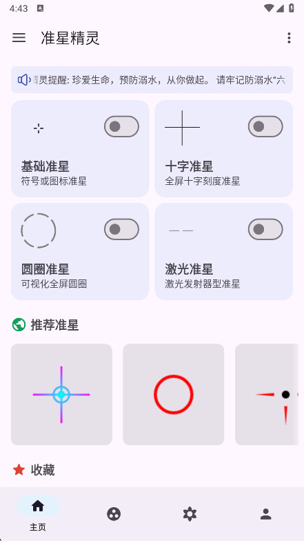 1、打开准星精灵app,进入后选择一个喜欢的准星,点击开启;