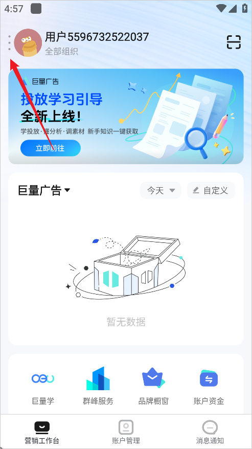 巨量引擎App是一款专业的移动营销管理平台,整合了巨量引擎工作台、巨量方舟、巨量广告、巨量千川等核心功能,为广告主和营销人员提供一站式推广服务。用户可随时随地在移动端完成投放管理、数据监测与效果分析,全面掌握营销动态。平台操作便捷,功能齐全,助力企业高效制定与优化营销策略,提升投放效果。巨量引擎App让营销管理更加智能化、移动化,是您的掌上营销专家。