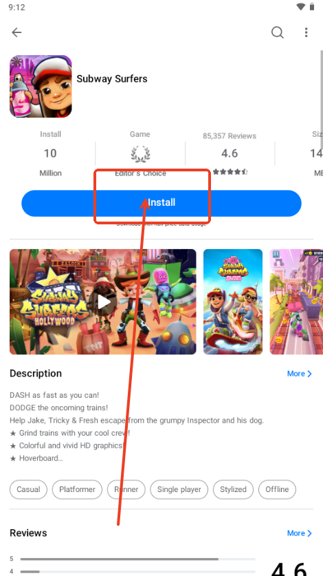 4、输入完成以后就会跳转到Subway Surfers的详情页面;