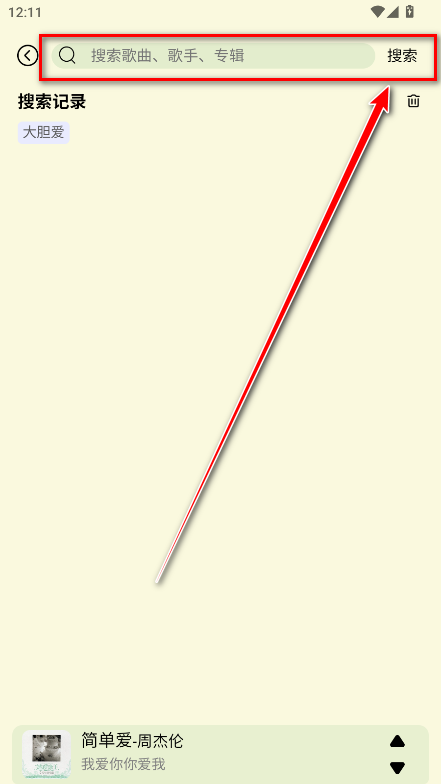 2.在搜索框输入歌曲、歌手、专辑名称等,然后点击搜索。