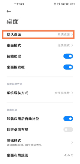 2.点击进入【默认桌面】