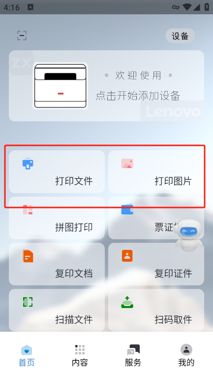 1.在本站下载安装联想至像打印app并打开