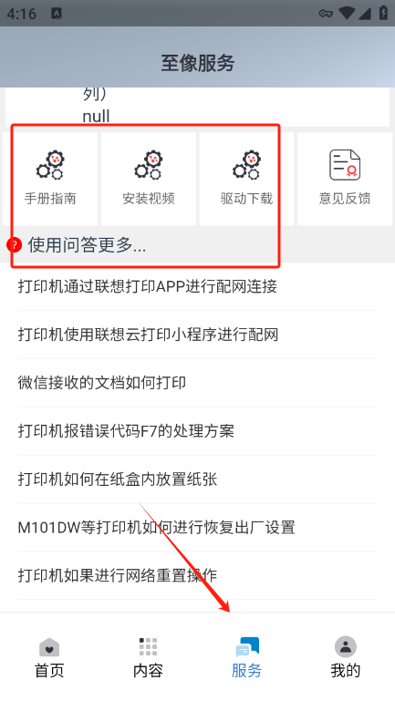 4.然后回到首页选择打印服务就可以了
