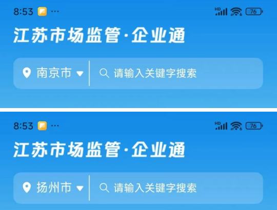 1.进入系统后,将左上角地区由“南京市”改为“扬州市”。
