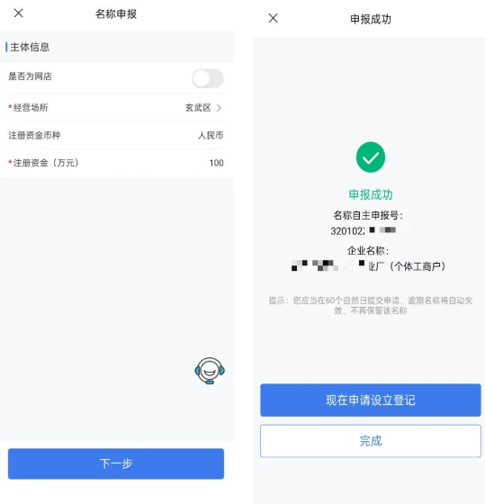 3.在申报之前,可先用“名称申报”功能单独申报名称(注:名称实行自主申报制,无人工干预,但正式登记可能因不符合规定被驳回,未确认前请勿制作标牌,避免损失)。 如有疑问可咨询在线客服。