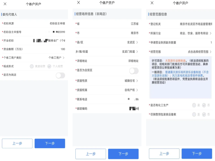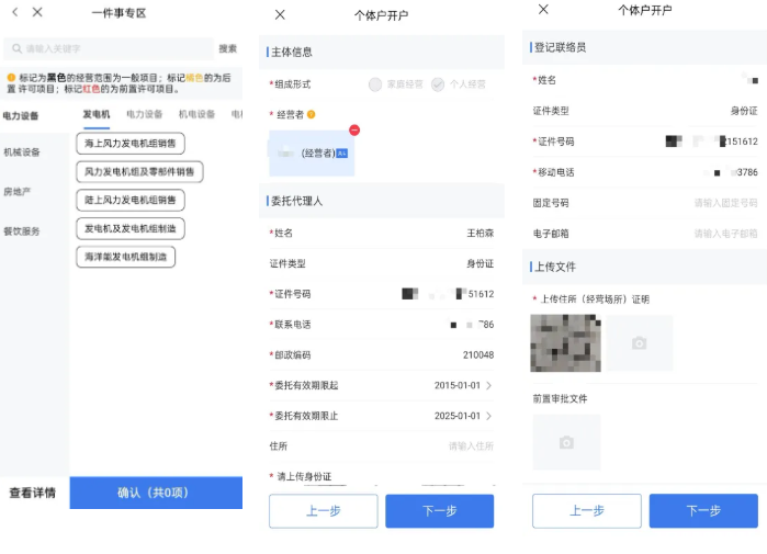 5.填好营业执照登记内容后点击“下一步”,进入公章刻制、银行预约开户、社保办理、公积金登记环节(不需要的可默认跳过),最后确认提交。