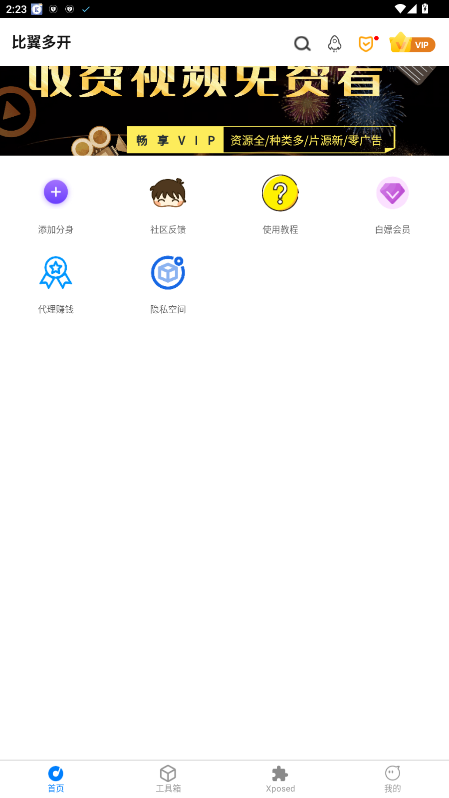 在“比翼多开”的首页“工具箱”中,找到语音转发点击进入并打开语音转发开关。