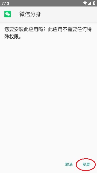7、直接点击“安装”即可,安装成功桌面就会出现一个“微信分身”的应用;