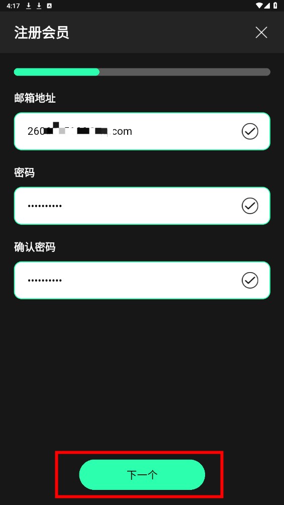 2.输入邮箱地址设置密码,点击下一个。