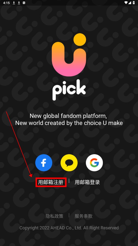 1.选择用邮箱注册按钮。