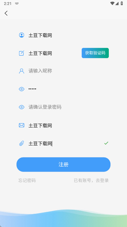 2.请按照软件的要求输入手机号、验证码、昵称、密码、重复密码、邮箱,再点击注册即可。