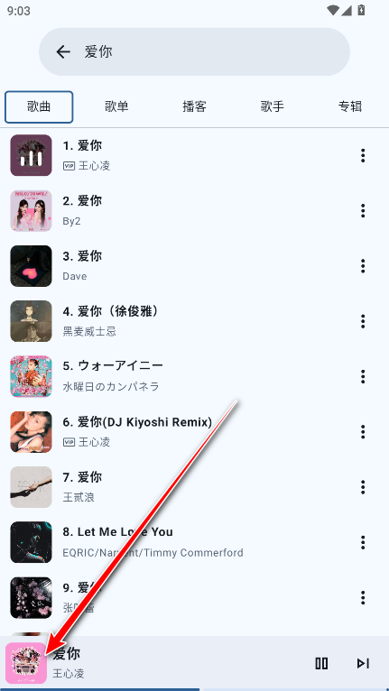 4.如下图所示,即可免费听歌了,再点击下方的歌曲封面。