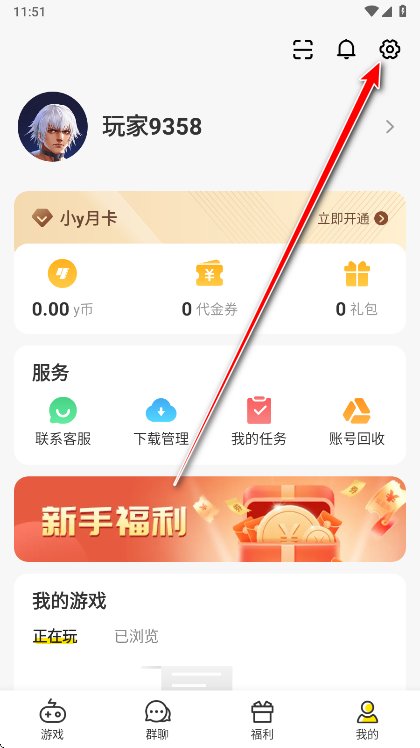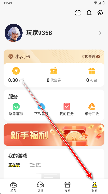 1.打开小y游戏盒,点击右下角我的。