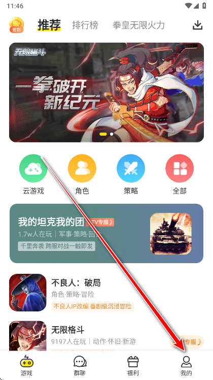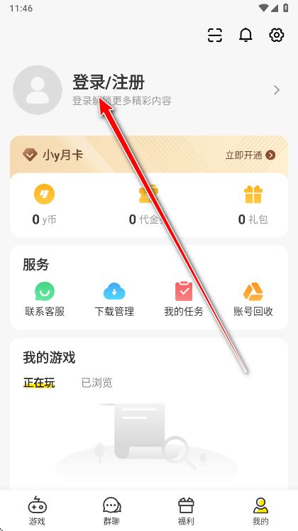 1.小编亲测是可以登录的呀,打开小y游戏盒,点击右下角我的。