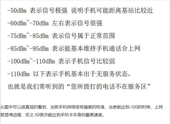 -60~-70表示信号优良。该值随距离增大而减小,持续过低或过高都会影响通信质量。