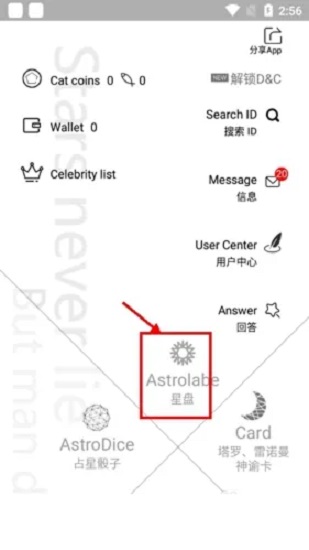 1、打开占星猫后,点击首页中的“星盘”功能。
