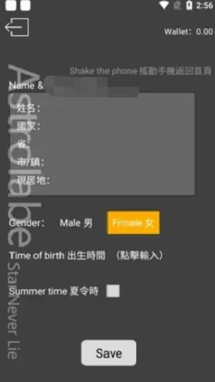 2、进入星盘后,点击“添加资料”,填写真实的个人信息,这个就不多说了。
