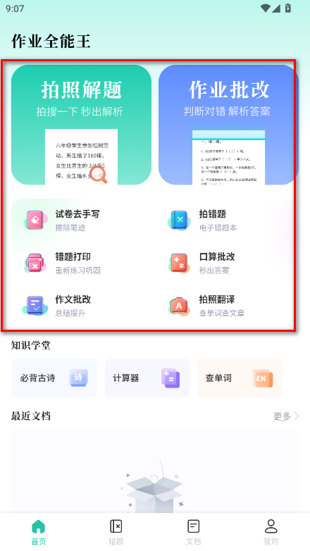 作业全能王app最大的亮点在于其针对学习场景的专业辅助功能。应用独创的拍试卷和试卷擦除功能,可以一键将手写的试卷扫描成高清电子版,并智能擦除原有笔迹,完美还原空白试卷,方便打印和二次练习。口算批改功能则能快速识别和批改口算作业,极大地减轻了家长和老师的负担。此外,拍错题功能可以高效整理和归类错题,形成专属错题本,帮助学生进行精准复习。这些功能有效地将传统学习资料数字化,让学习效率倍增。