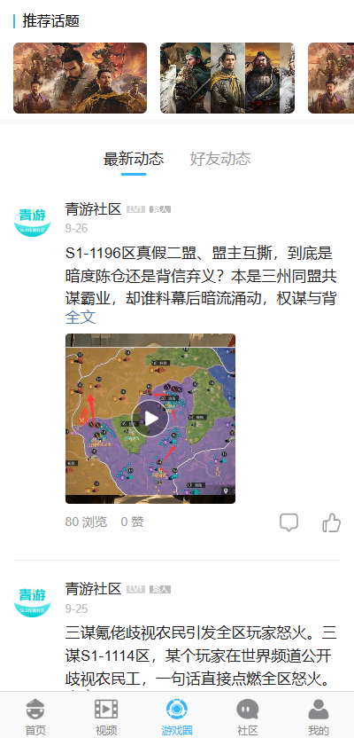 青游社区app是一款专为SLG策略游戏爱好者打造的专业社交平台,在这里你可以畅聊游戏八卦与联盟动态,获取大神攻略,参与战术讨论,全面提升游戏实力。平台汇聚众多志同道合的玩家,帮助你结识战友,组建属于自己的超级联盟。无论是新手还是资深玩家,都能在青游社区找到懂你的伙伴。这里不仅是交流心得的天地,更是温暖有爱的玩家之家。加入青游社区,开启属于你的策略游戏新旅程!