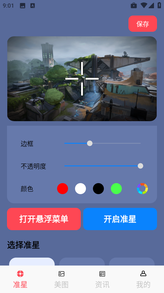 3、接着自定义设置好准星的大小,粗细,间距,边框以及不透明度等之后,点击“开启准星”。