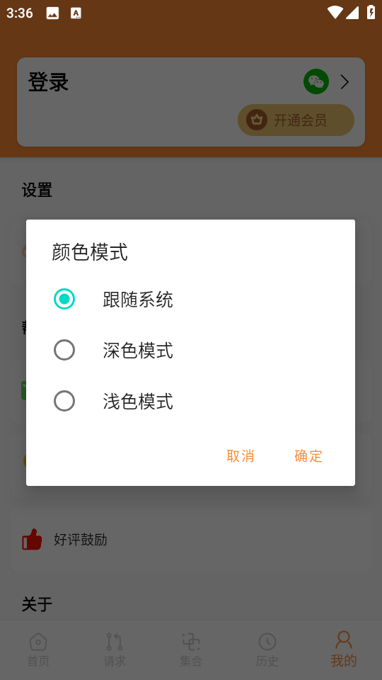 5、最后点击右下角“我的”,还可以一键修改主题颜色模式。