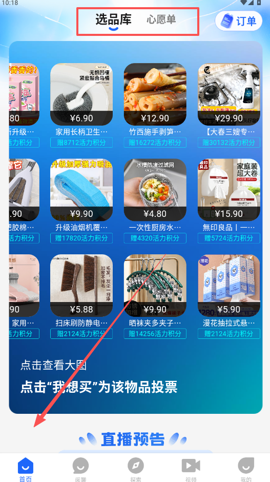 3、注册即登录,来到首页分别查看“选品库”和“心愿单”。