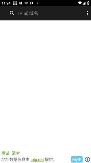 1、输入目标:在APP上方搜索框中输入需查询的IP地址或域名,点击查询;