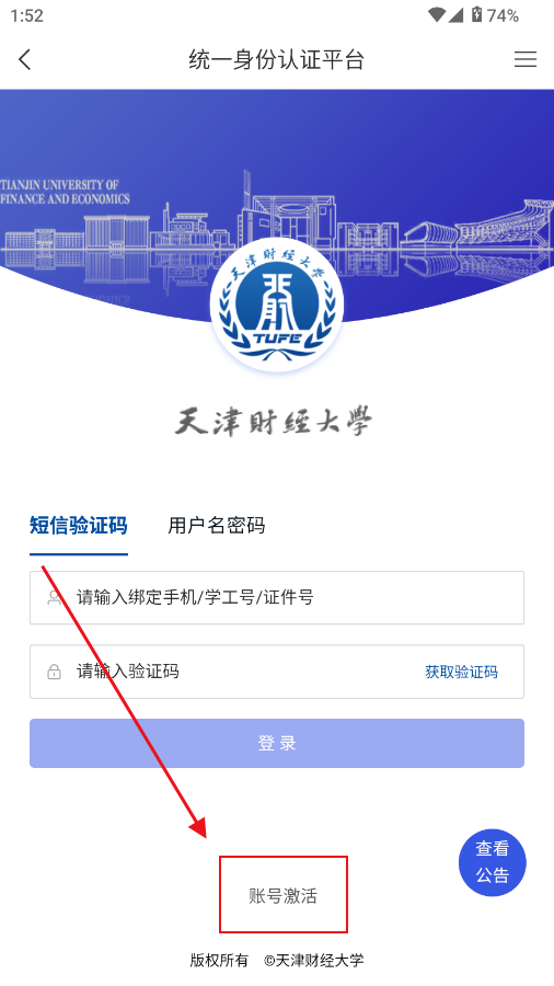 2、打开进入软件,进入登录页面,点击下方的账号激活
