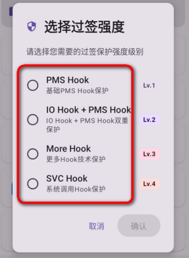 4、根据自己的需求选择过签保护强度级别,然后点击右下角的确认