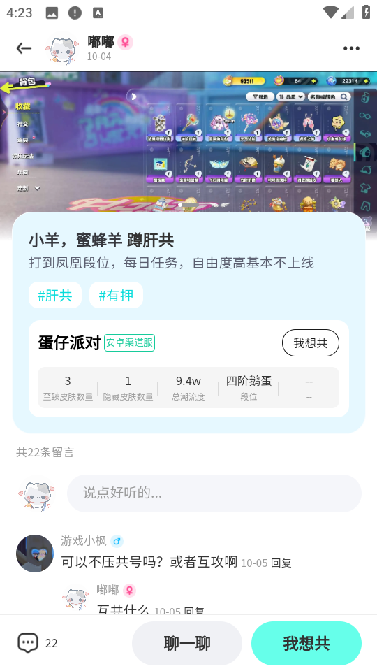 5、根据实际需求,选择好一款游戏账号,直接点击“我想共”,即可玩游戏了。