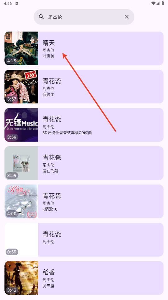 3.根据搜索结果选择你想播放的歌曲。你可能还会看到不同版本或类型的歌曲。