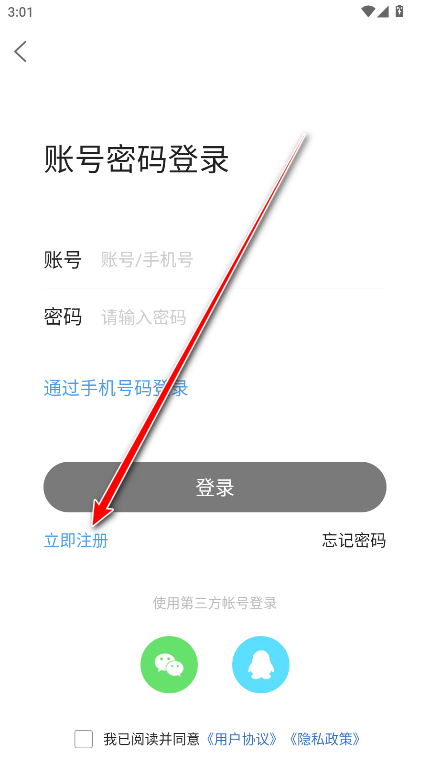 3、点击立即注册。