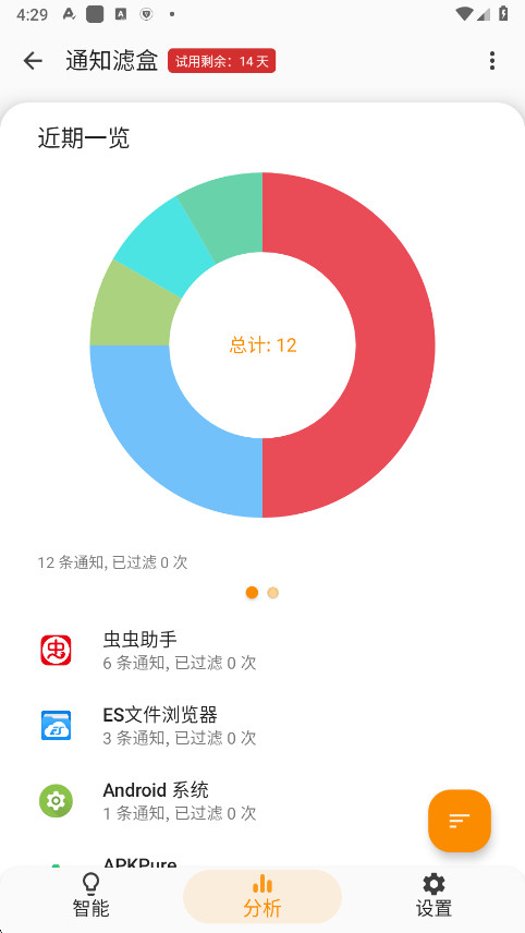 4、分析界面能够看到消息通知来源和频率,非常的直观。